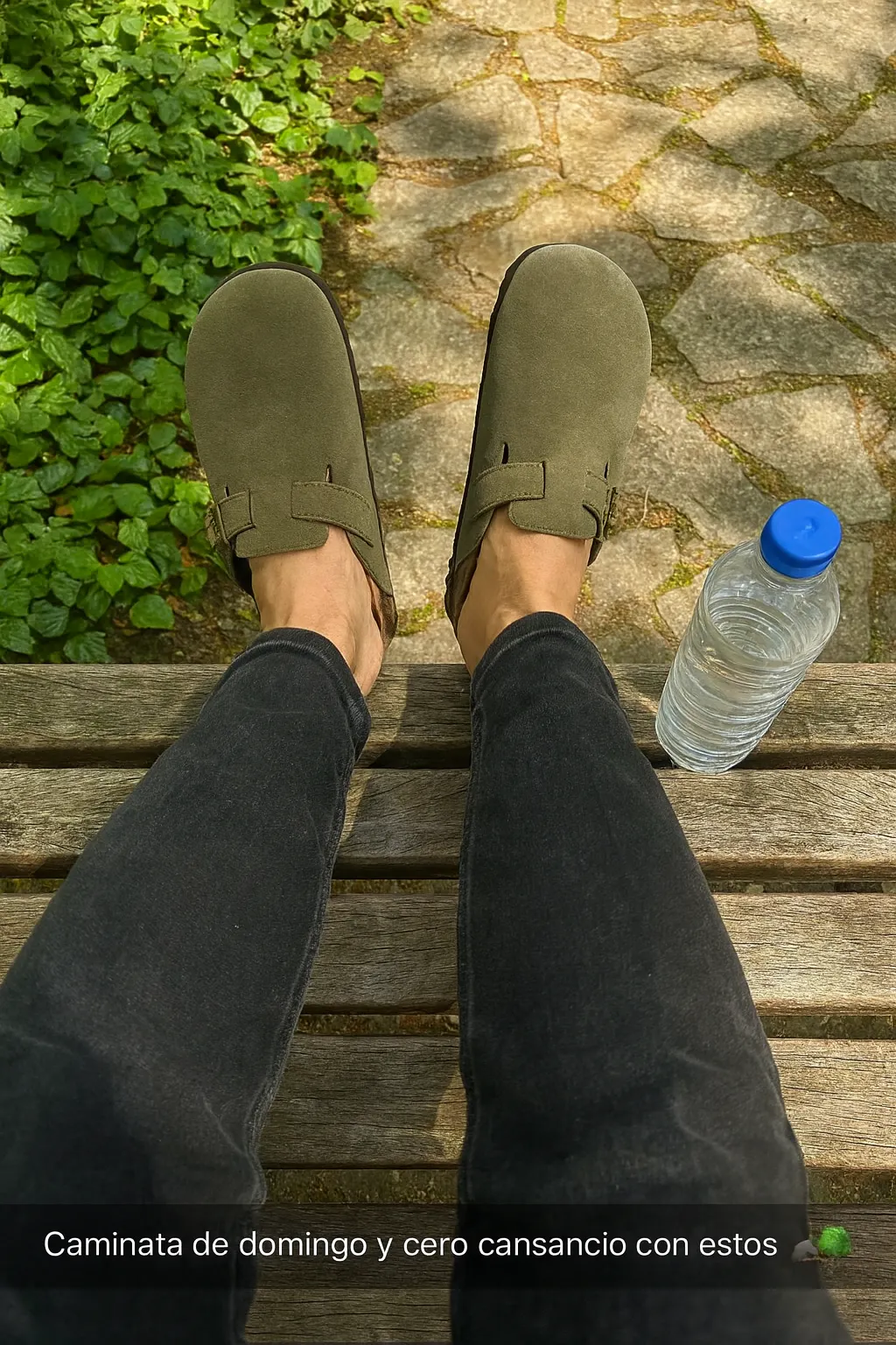 Materiales premium – ante natural, corcho y EVA de alta densidad.
